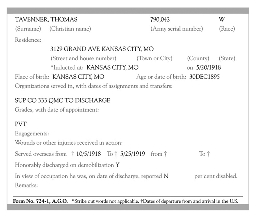 World War I - Military Record This document was found at the Missouri State Archives website under: Soldiers Database: War of 1812 - World War I. |