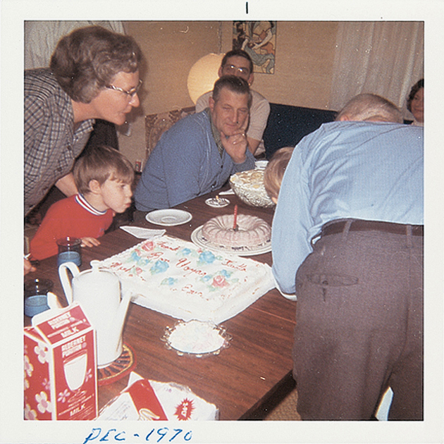 Bon Voyage Party for Frank + Jutta Tavener - Dec. 1970 From left to right: Eva Tavener, Marc Tavener, Eugene Carsey (front), Norman Canfield (behind), the head of Eric Tavener and the back of Henry Tavener. Picture taken at the house of Frank & Jutta Tavener at 21 So. 24th St., Kenilworth, Union Co., N.J. |