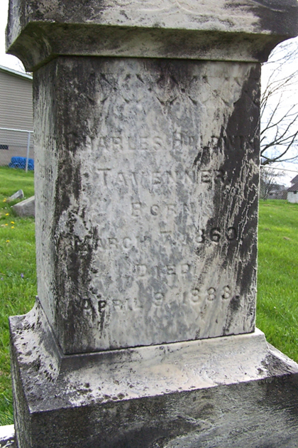 Old Tavenner Graveyard, Parkersburg, West Virginia Detail of grave monument of Charles Baldwin Tavenner. (Photo contributed by Parkersburg Nostalgic Gazette) |