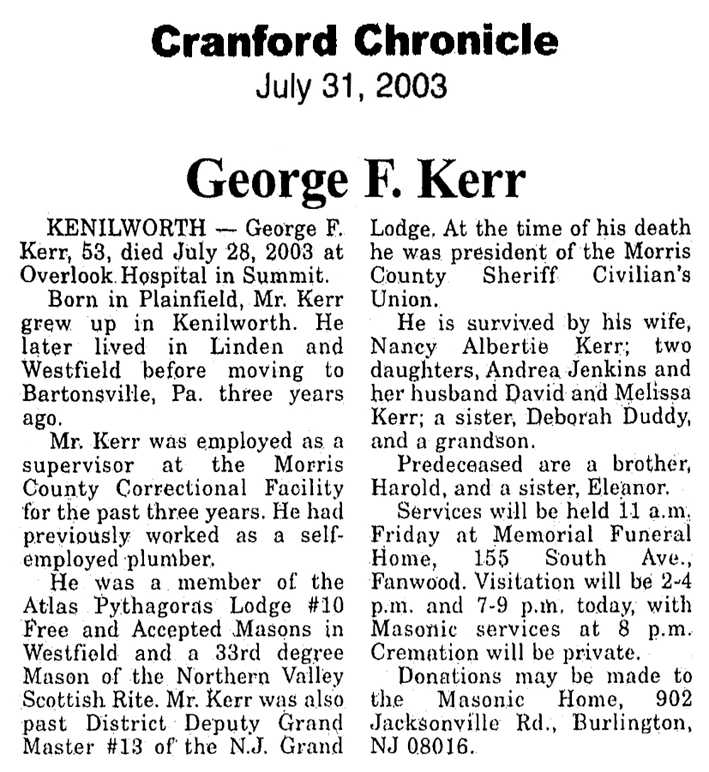 Cranford Chronicle Newspaper Obituary - 31 July 2003