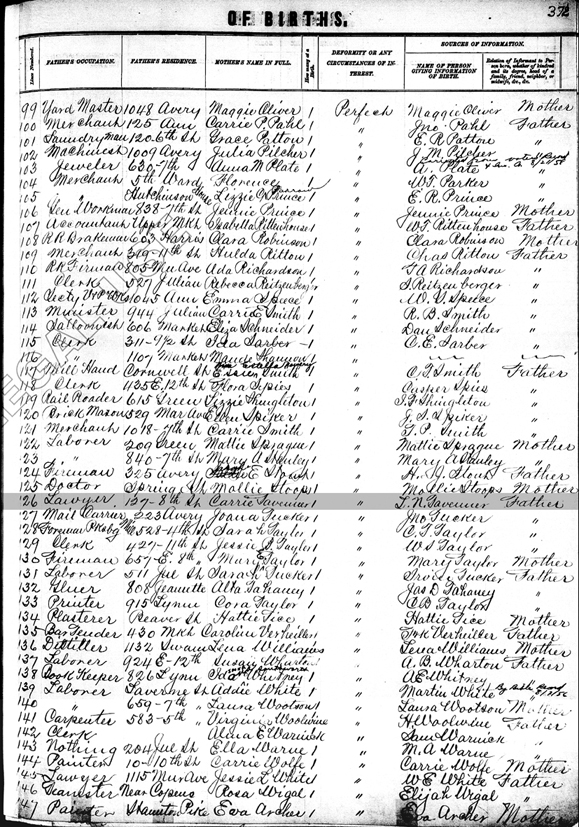 Original Register of Births Book, Wood County, West Virginia Page 56, Line 153 (right side) - Father's Occupation: Judge; Residence: 127 8th Street, Parkersburg; Name of mother: Carrie Tavenner; How many at a birth: 1; Person providing information: L. N. Tavenner, Father |