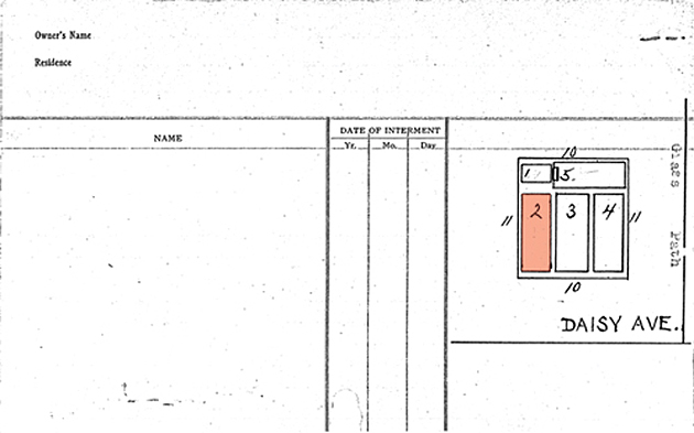 Interment Card (back) Copy obtained from Rosedale Cemetery, Orange, Essex Co., New Jersey. |