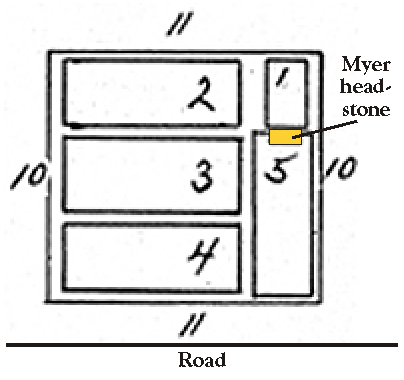 Plot sketch Taken from back of Interment Card, rotated and modified, to show plot from road as it's actually landscaped today. |