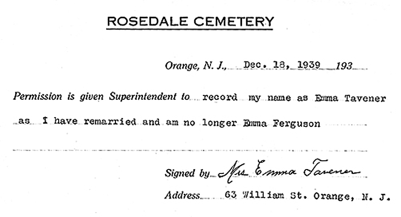 Name-change Form Rosedale Cemetery Form signed by Emma Tavener |