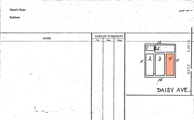 Interment Card (back) Copy obtained from Rosedale Cemetery, Orange, Essex Co., New Jersey. |