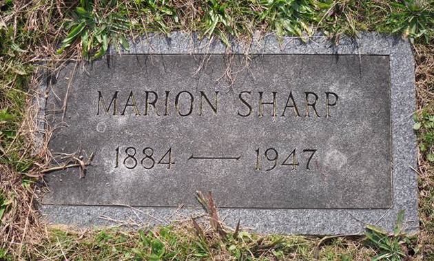 Gravestone for Marion Sharp. (Photo contributed by Crystal Gywnn)