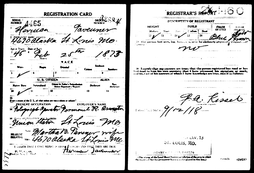World War I - Military Registration Card Draft Card of Herman Tavenner. |